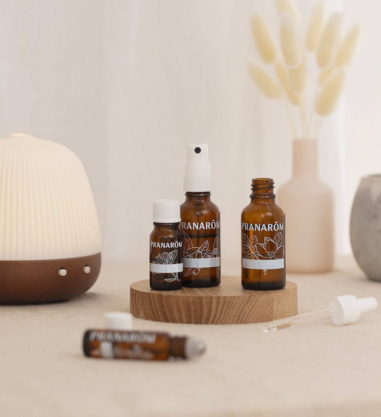 Pour aller plus loin, vous pouvez également préparer un roller sommeil à appliquer localement sur les points de pulsation, tels que les poignets, les tempes ou la nuque. Une synergie douce à base d’huile essentielle de Ravintsara, reconnue pour ses propriétés équilibrantes et purifiantes, d’huile essentielle de Camomille noble, aux vertus calmantes et anti-stress, et d’huile essentielle de Marjolaine à coquilles, aux effets relaxants et sédatifs, vous accompagne efficacement dans l’instauration d’un moment de détente profond avant le coucher. Ce soin personnalisé, facile à emporter, complète à merveille la diffusion pour une nuit sereine et réparatrice.