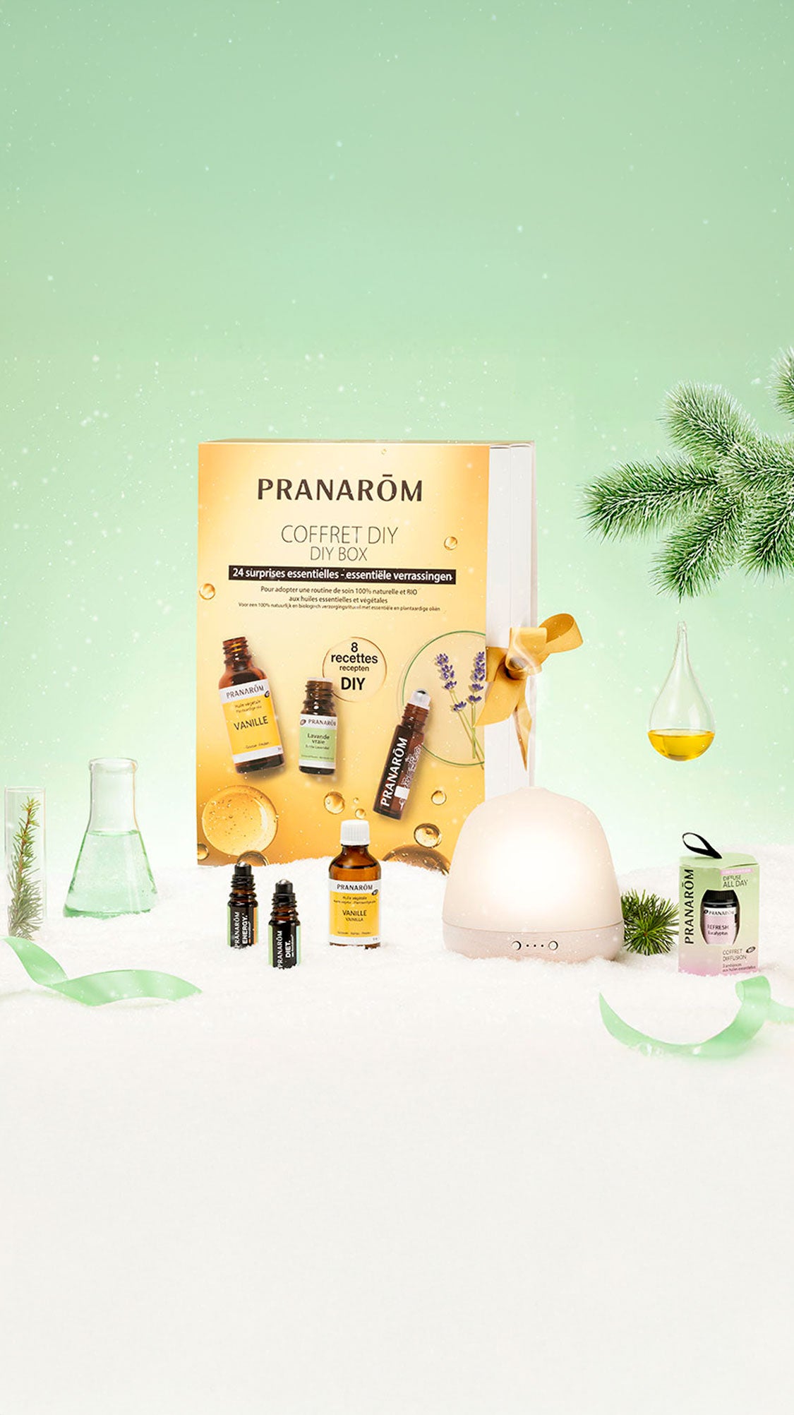 Le coffret* Diffuse all day vous accompagne tout au long de votre journée. *Coffret de 3 synergies d’Huiles Essentielles prêtes à diffuser.