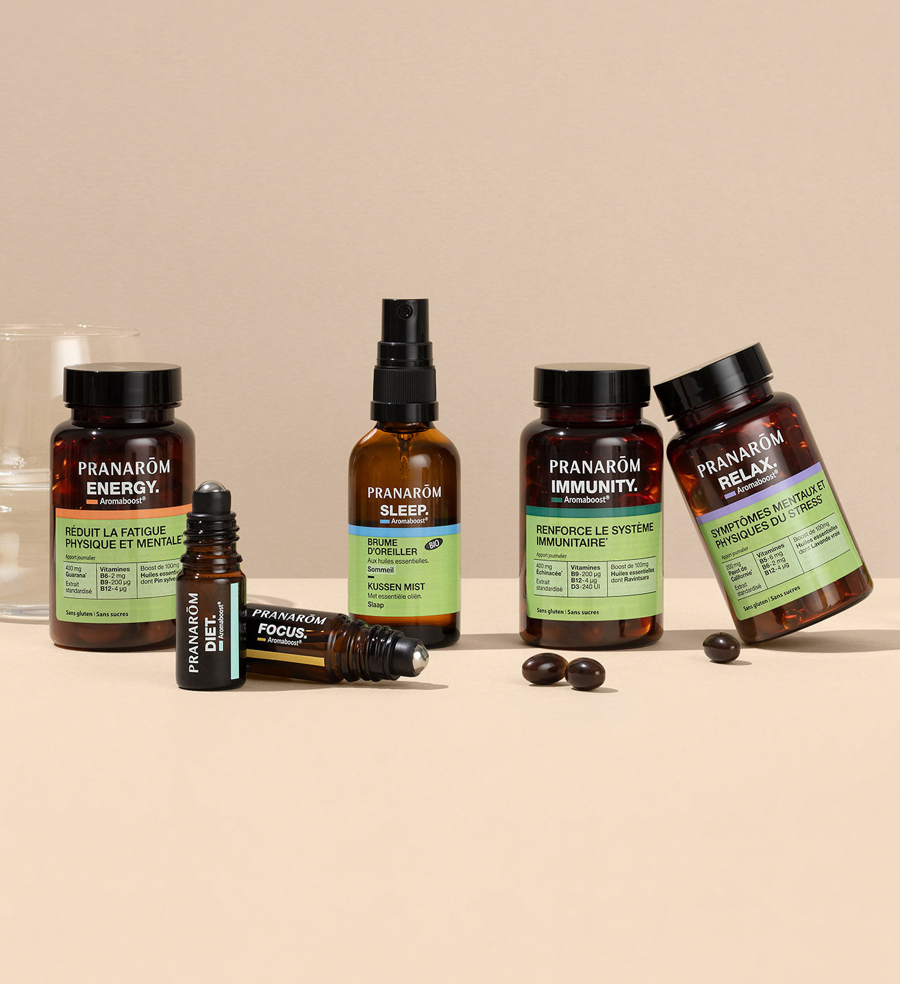 Notre complément alimentaire Aromaboost SLEEP a été formulé pour faciliter l’endormissement et offrir un soutien durable, aidant à retrouver rapidement un sommeil réparateur. Idéal lors des périodes de sommeil perturbé, ce complément ne présente aucun risque de dépendance et s’utilise en cure d’un mois. Sa composition naturelle (99,1% d’ingrédients d’origine naturelle, sans sucre et sans gluten) associe un extrait sec standardisé de Valériane, les vitamines B3, B6 et D3, ainsi qu’une synergie d’huiles essentielles de Camomille noble, Lavande vraie et Essence de Mandarinier.