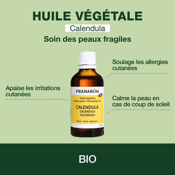 L’Huile Végétale de Calendula est idéale en cas de coup de soleil. Obtenue par macération de fleurs de souci, elle est connue pour ses vertus apaisantes, anti-inflammatoires et régénérantes. Elle aide à calmer l’irritation et favoriser la cicatrisation, tout en constituant un excellent support pour les Huiles Essentielles.