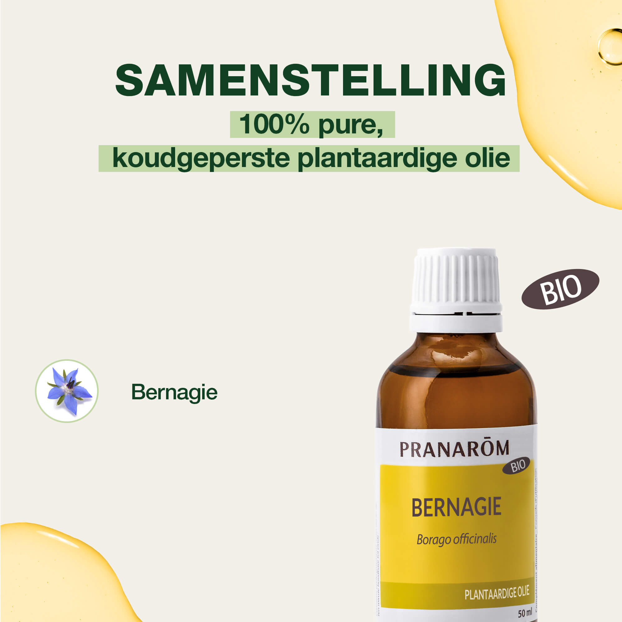 Eerste koude persing van de zaden van de Bernagiebloemen