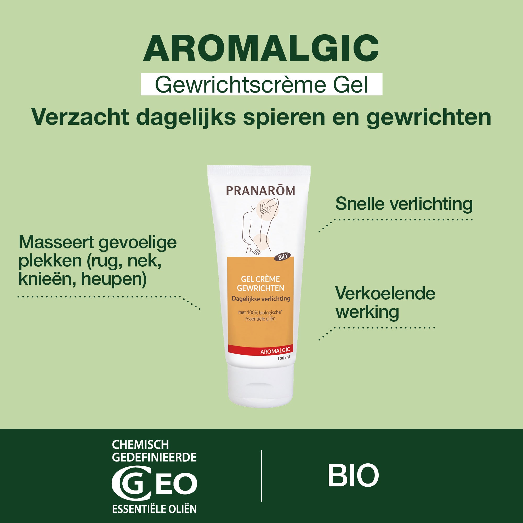 Gewrichten en spieren BIO Aromalgische crèmegel, voor het verzachten van vermoeide spieren en gewrichten