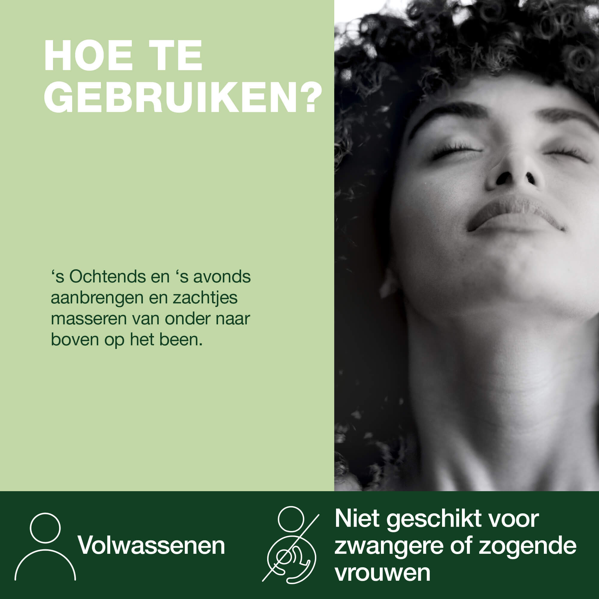 Solution 3 en 1 pour apaiser, rafraîchir et tonifier les jambes lourdes et fatiguées. Texture non grasse et non collante.