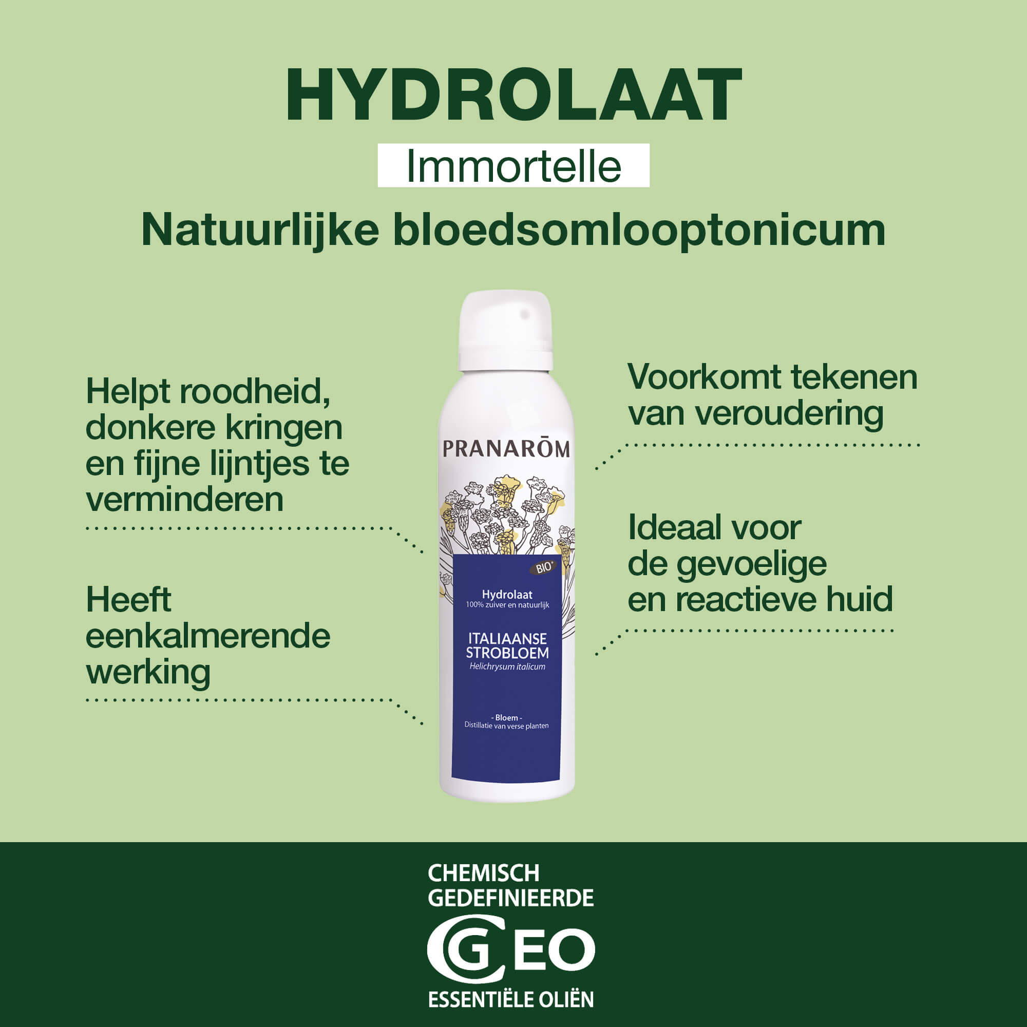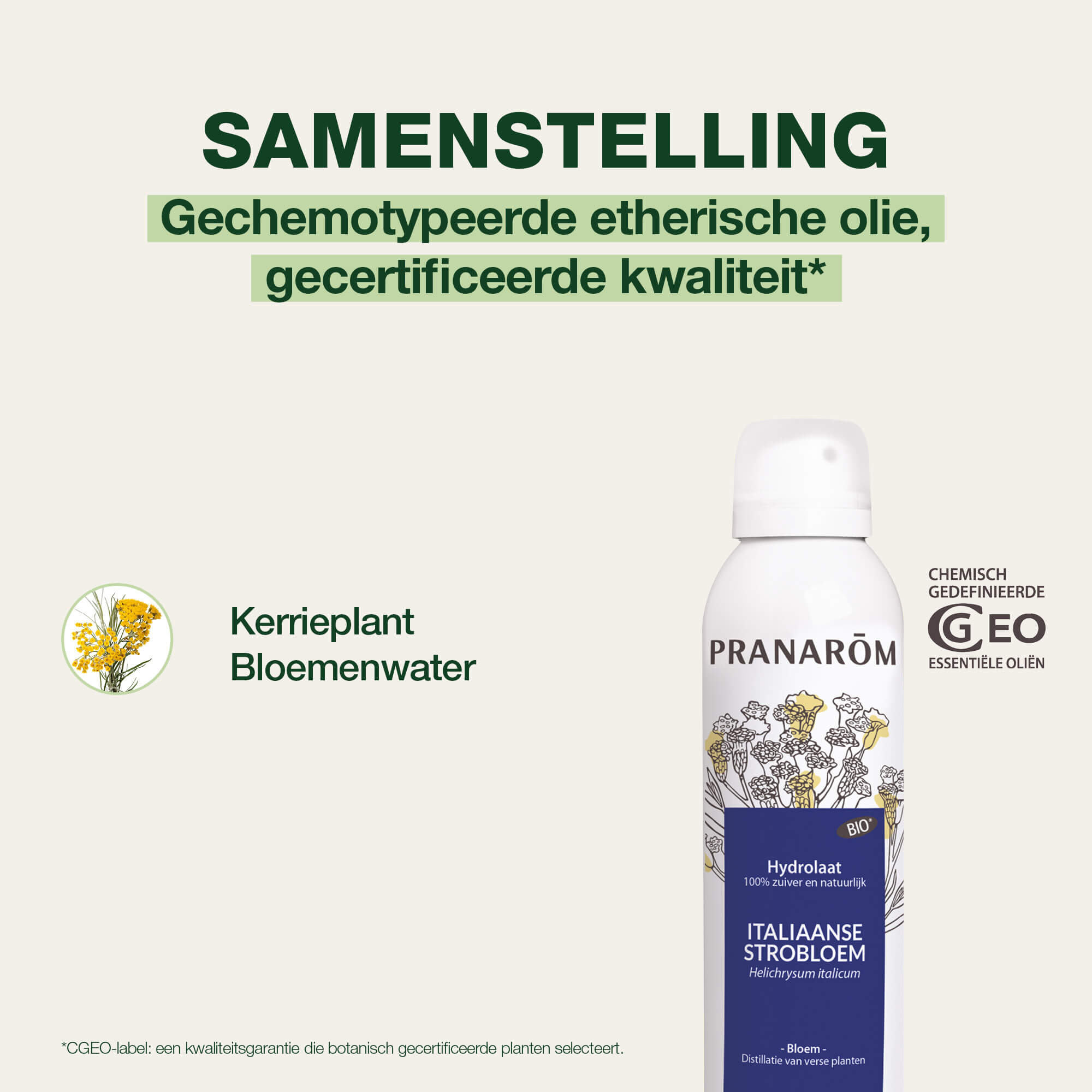 Geformuleerd met biologische Kerrieplant, biedt dit hydrolaat een natuurlijke en zachte oplossing om de huid te verstevigen en tegelijkertijd dagelijks bij te dragen aan het comfort en de schoonheid. Pranarôm garandeert u een onberispelijke kwaliteit en een optimale doeltreffendheid voor de verzorging van uw huid.
