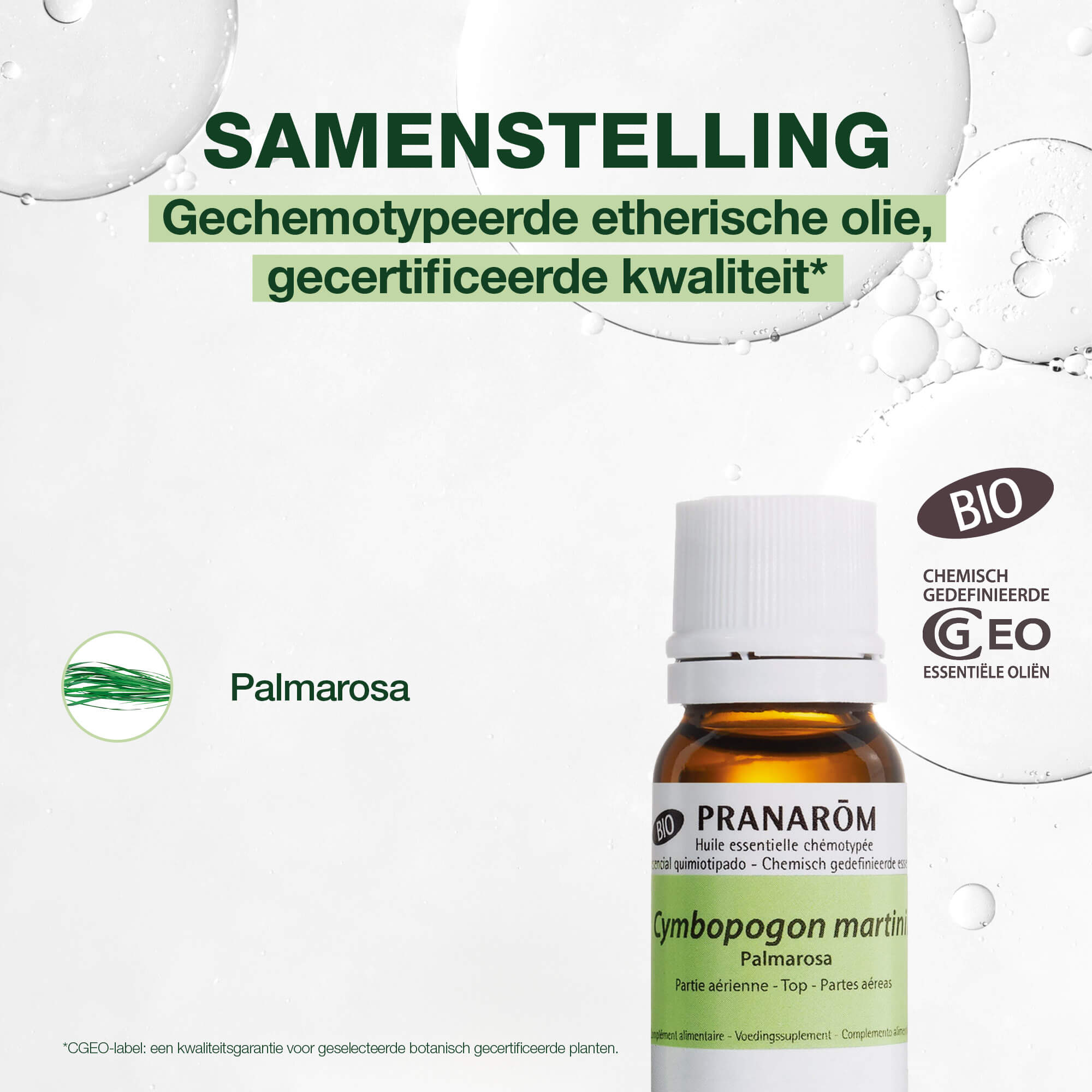 L’Huile Essentielle de Palmarosa BIO est reconnue pour ses vertus purifiantes et équilibrantes, idéales pour prendre soin des peaux à imperfections et accompagner les périodes de fragilité saisonnière.