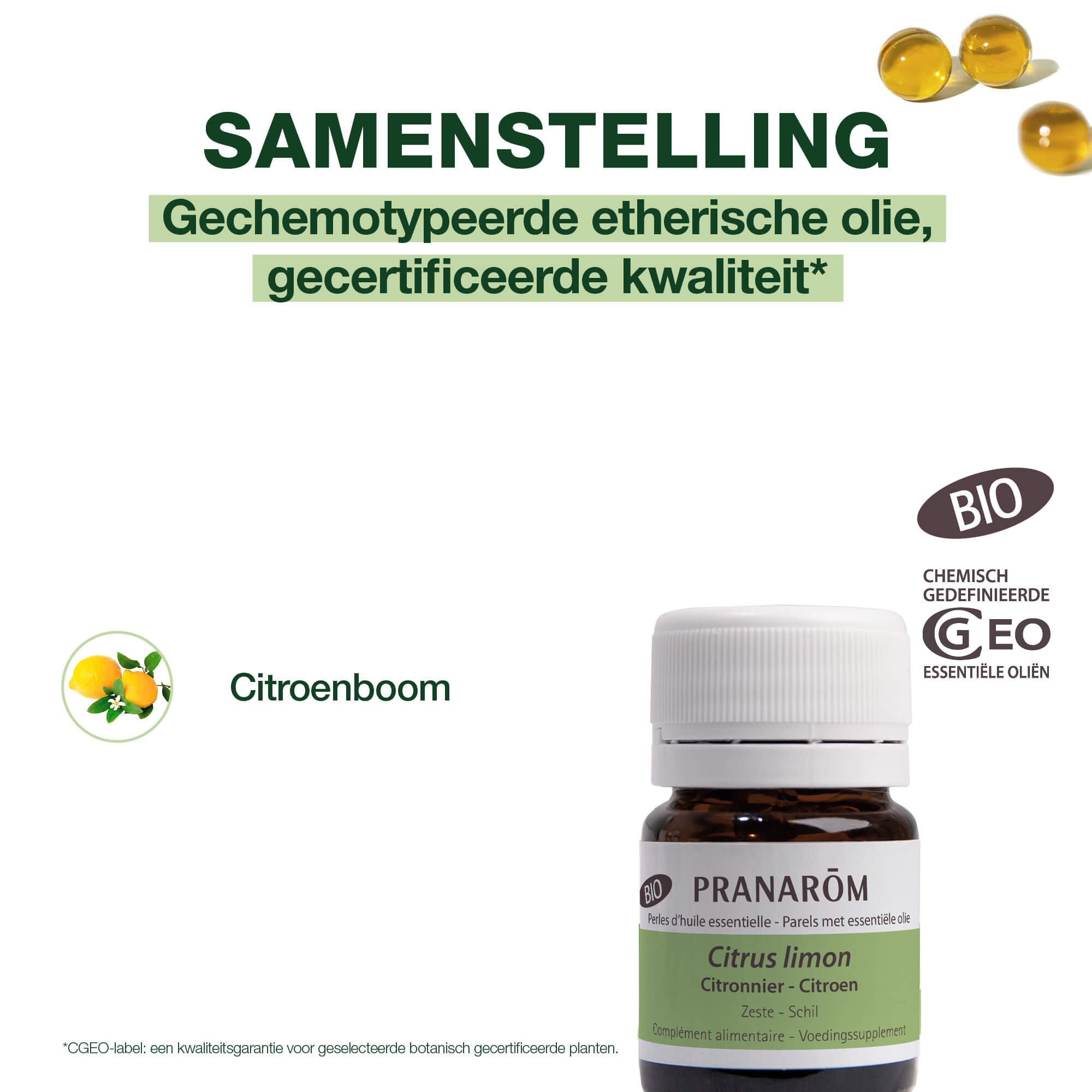 Perles d'essence de citronnier pré dosées, faciles à avaler, sans goût ni odeur. L'essence de citronnier est reconnue pour ses propriétés toniques et assainissantes.