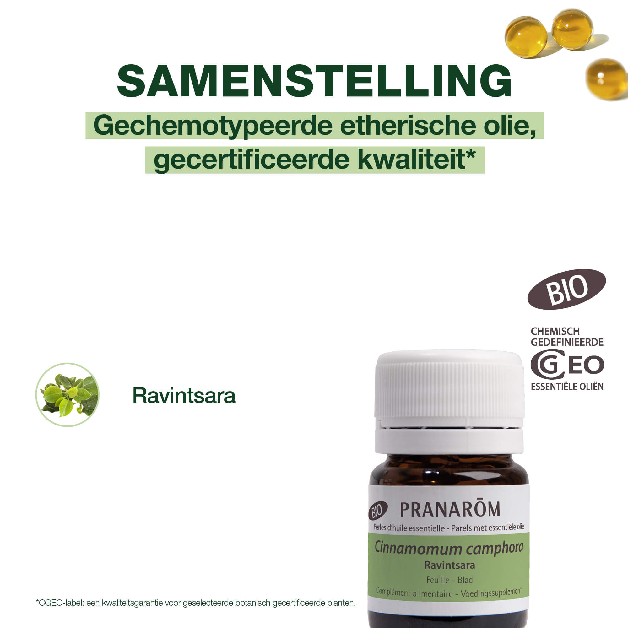 Capsules d'Huile Essentielle de Ravintsara. Pré dosées, goût neutre pour une prise facile. Ce format pratique s'emporte partout.