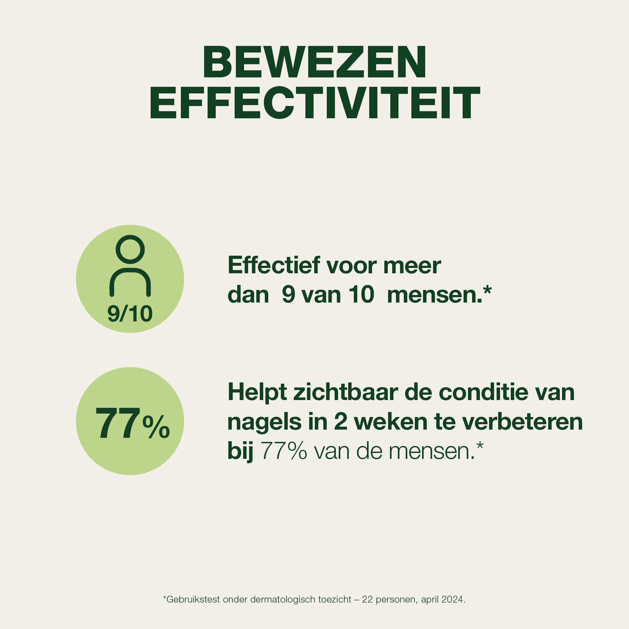• Helpt de conditie van de zichtbare nagel te verbeteren in 2 weken bij 77% van de gebruikers*