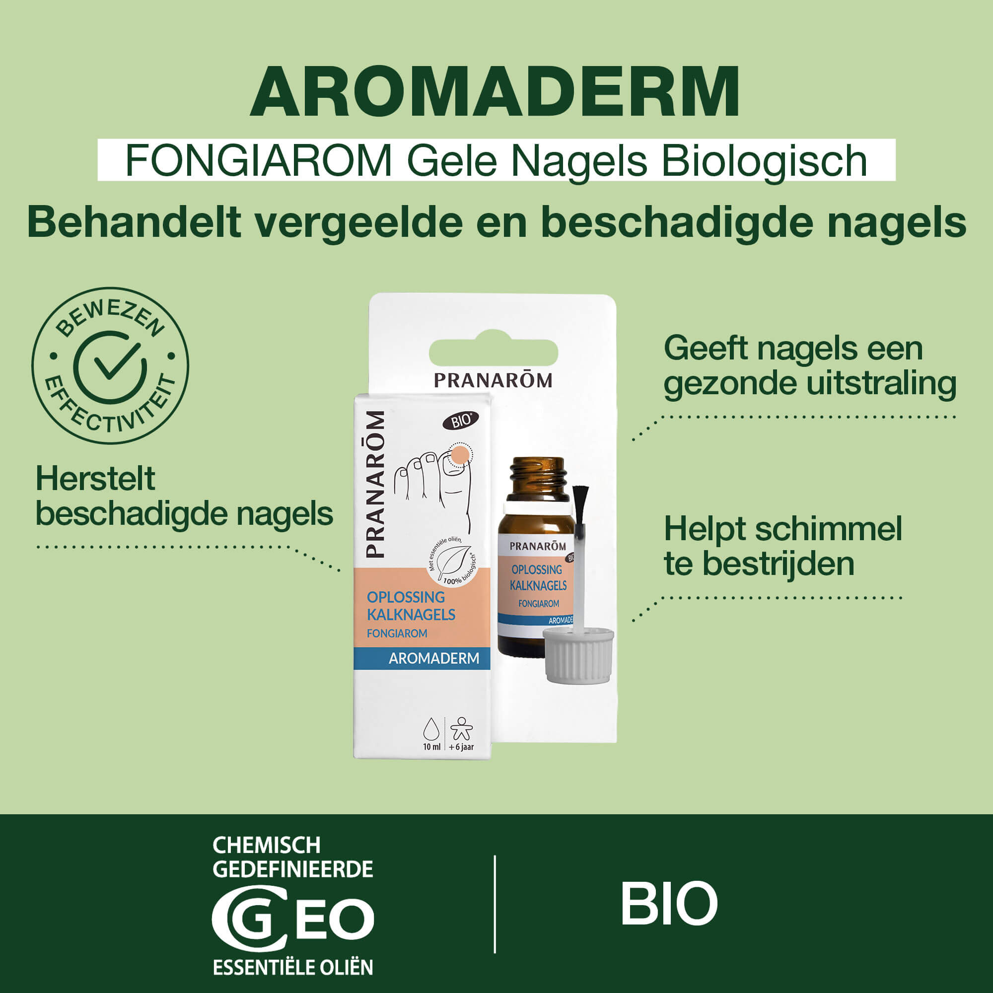 Fongiarom Vergeelde Nagels - Beschadigd AROMADERM is een natuurlijke oplossing die is ontworpen om verzwakte of vergeelde nagels te helpen reinigen en versterken.