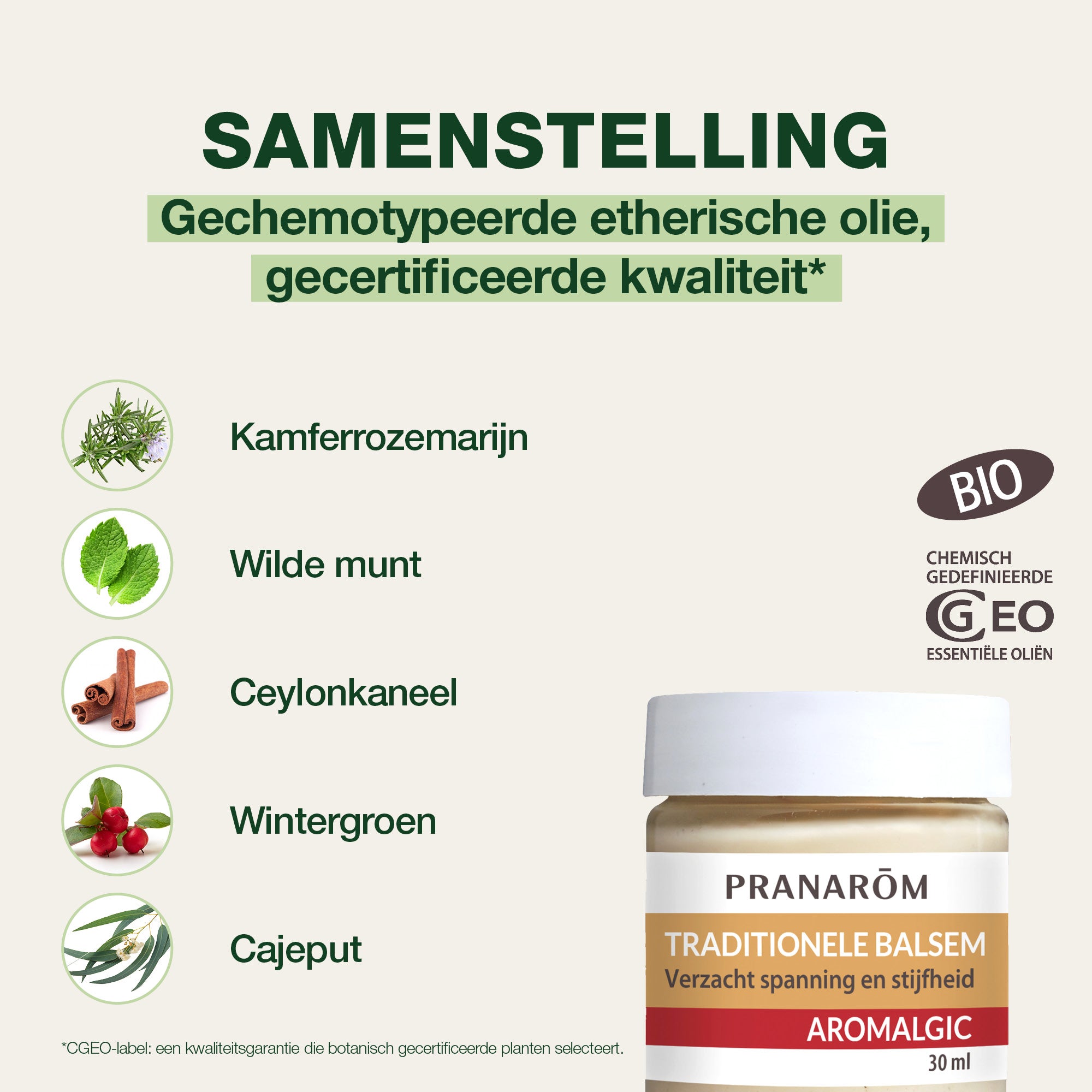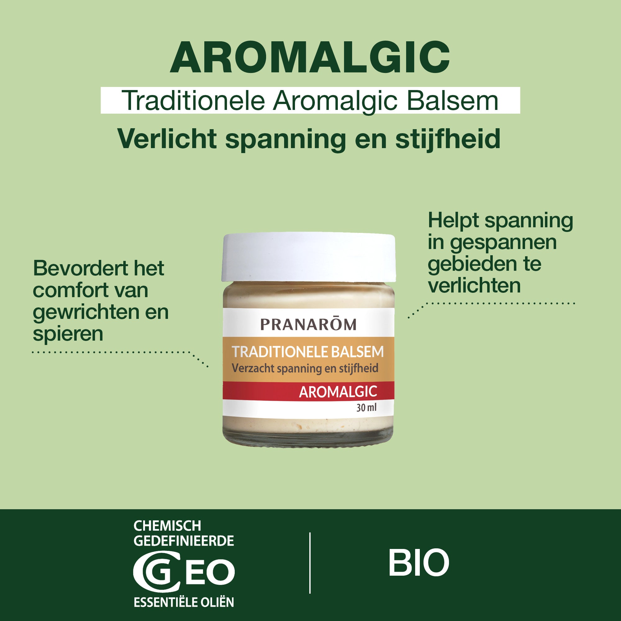 Découvrez le Baume Traditionnel Aromalgic pour apaiser les tensions et raideurs articulaires et musculaires. Une solution Pranarôm aux Huiles Essentielles 100% biologiques, pures et intégrales.