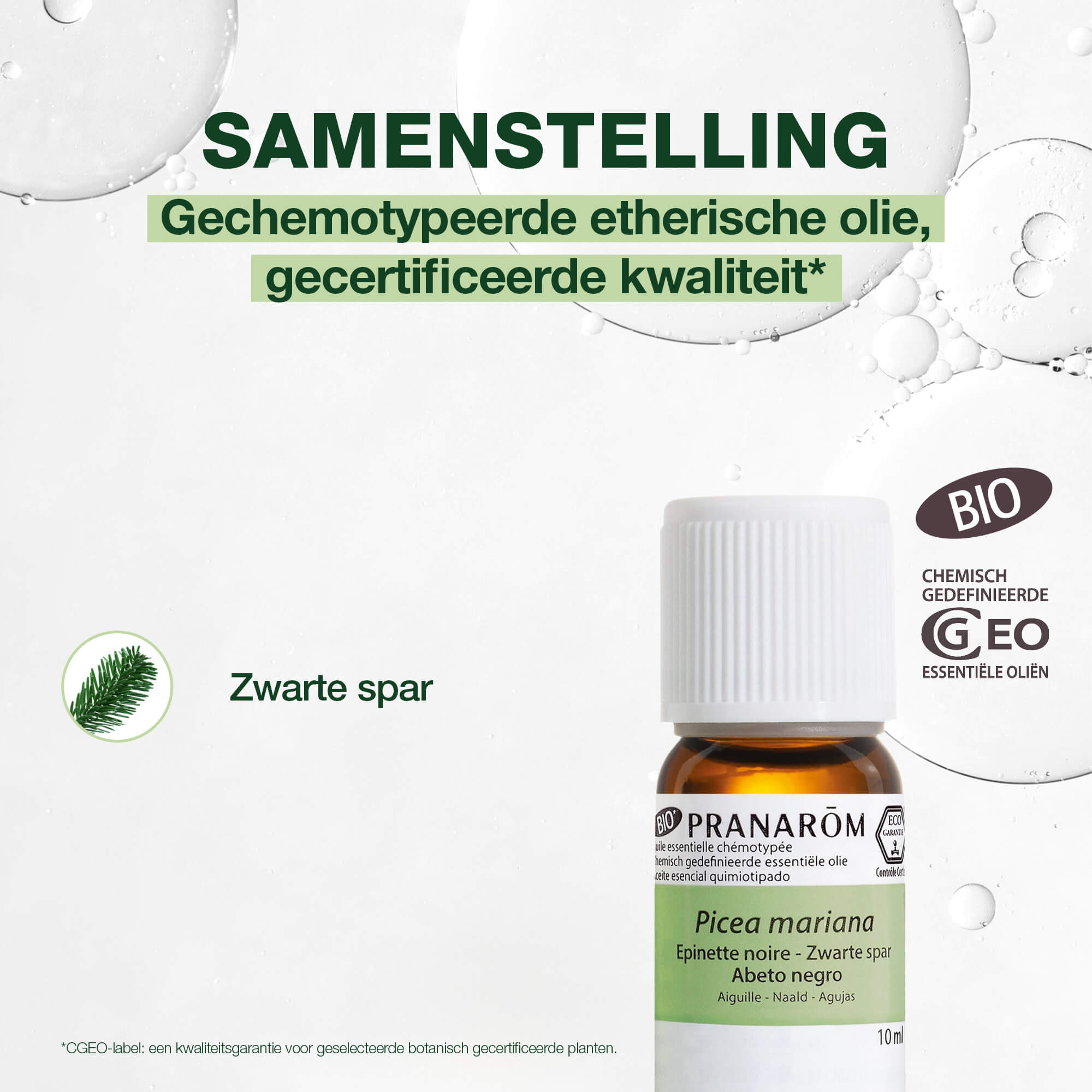 Découvrez l'Huile Essentielle d'Epinette Noire. Une solution Pranarôm 100% biologique, pure et intégrale.